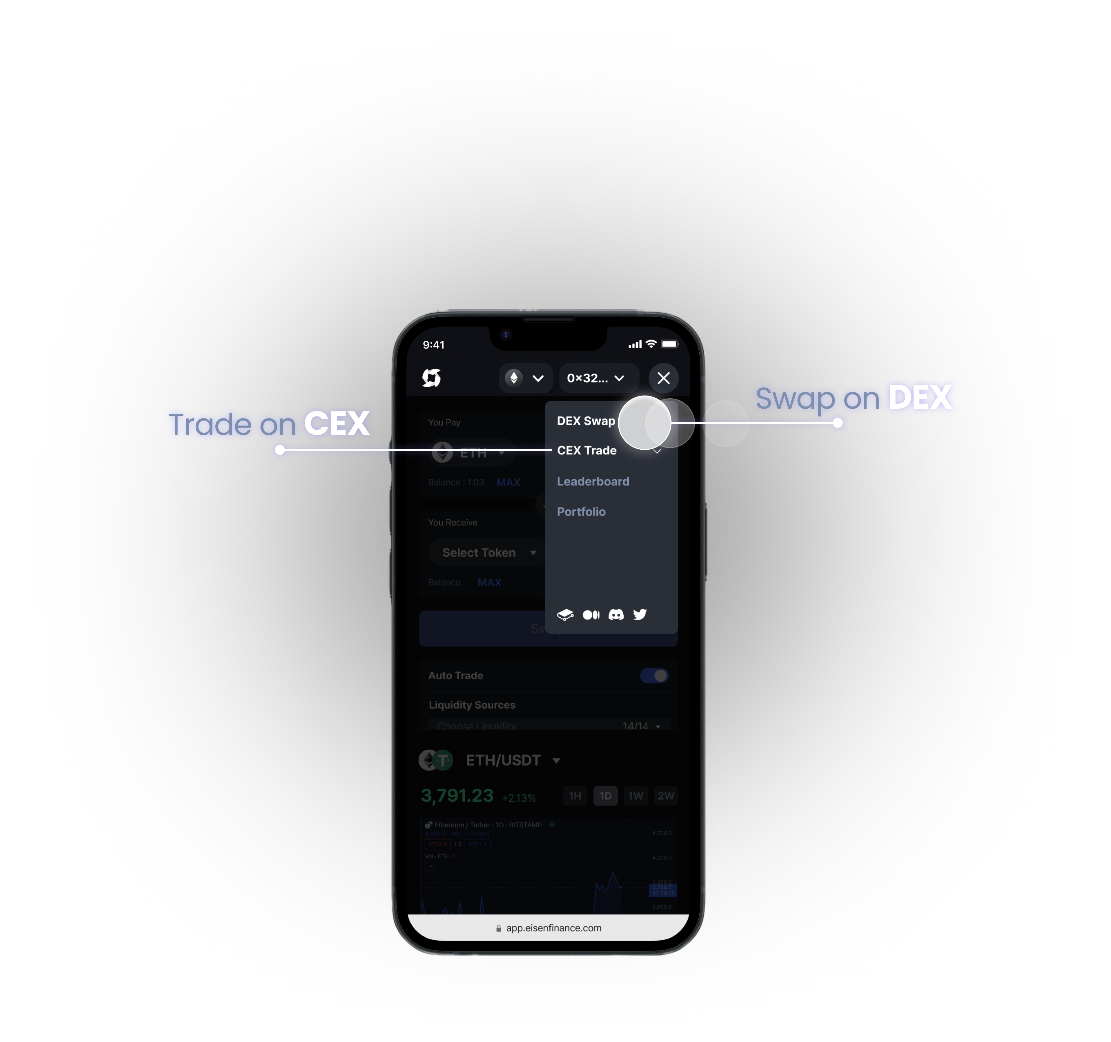 Eisen Finance has the customizable advantage in that spots and derivatives are available on CEX and DEX at the same time.